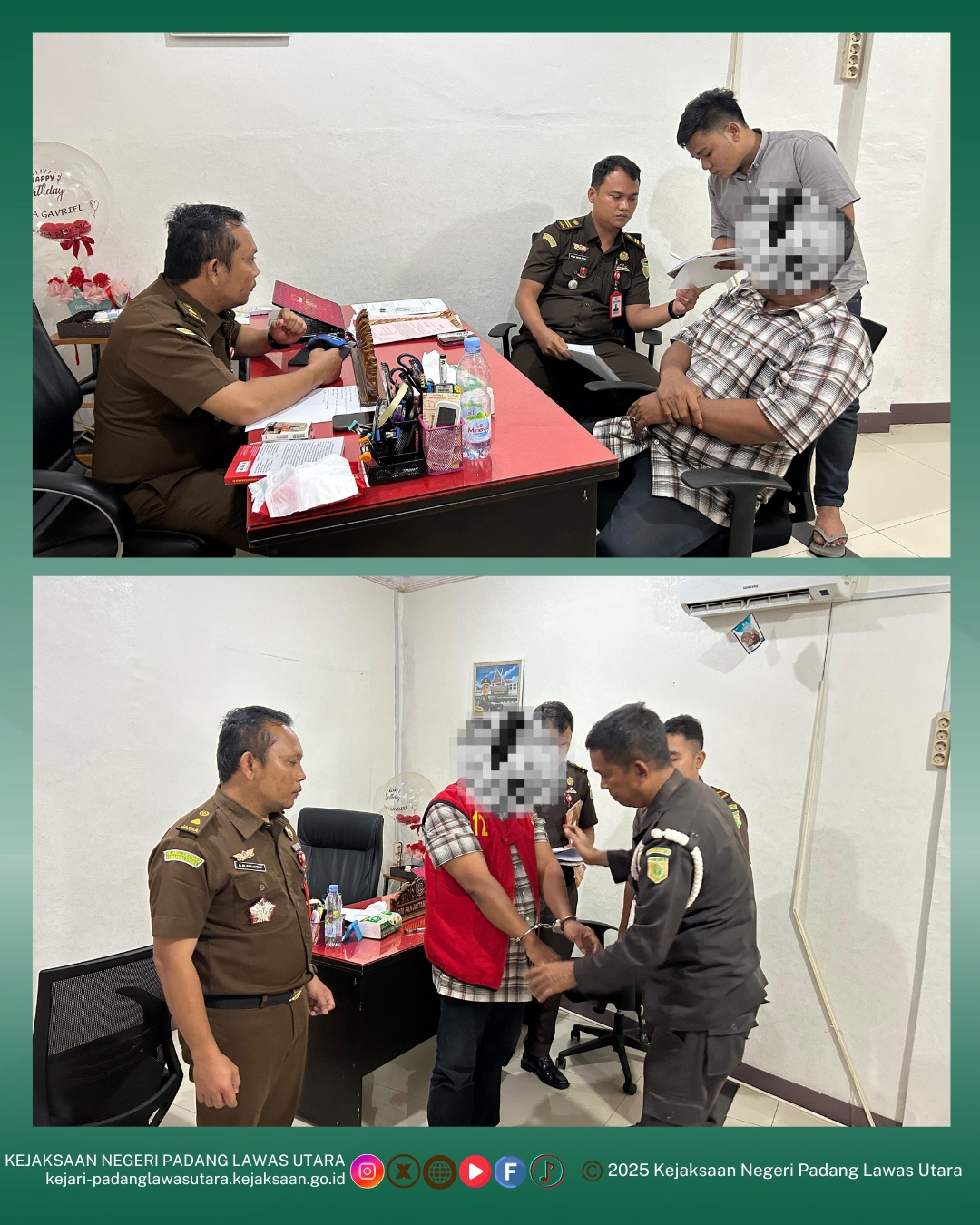 Kejari Paluta - Gununtua, pada hari Senin tanggal 05 Mei 2025, bertempat di Kantor Kejaksaan Negeri Padang Lawas Utara telah dilakukan Penetapan sebagai Tersangka dan Penahanan terhadap Tersangka an. MS dalam Perkara Dugaan Tindak Pidana Korupsi Penyalahgunaan Anggaran Pendapatan dan Belanja Desa di Desa Situmbaga, Kecamatan Dolok, Kabupaten Padang Lawas Utara Tahun Anggaran 2022 dan 2023.
