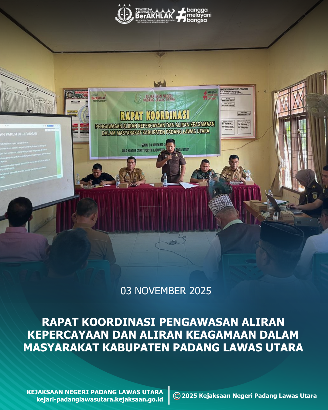 telah dilaksanakan Rapat Koordinasi Pengawasan Aliran Kepercayaan Dan Aliran Keagamaan Dalam Masyarakat Kabupaten Padang Lawas Utara.