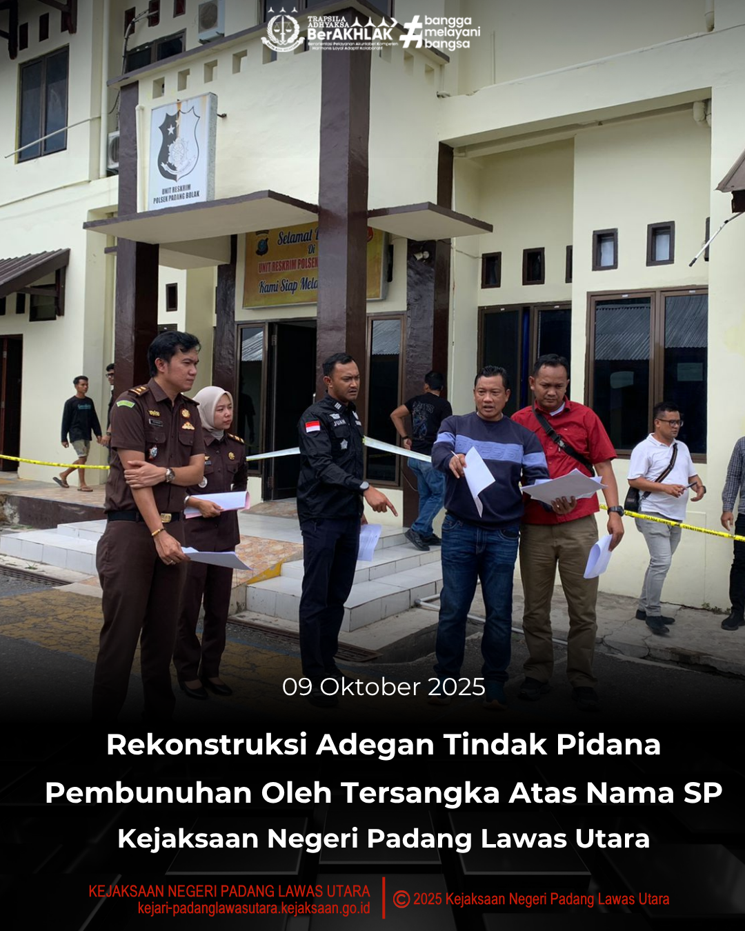 Rekonstruksi adegan tindak pidana pembunuhan tersebut diikuti oleh Jaksa Penuntut Umum Kejaksaan Negeri Padang Lawas Utara, Bapak Juanda Fadli, S.H.,M.H., Bapak Herman Ronald Mauritz Panjaitan, S.H., M.H, Ibu Yunita Pasaribu, S.H., Kasat Reskrim Polres Tapanuli Selatan, Bapak Hardiyanto, S.H.,M.H., Kanit Pidum Polres Tapanuli Selatan, Bapak Bambang Rahmadi, S.Sos.