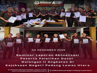 Halo #SobatAdhyaksaKamis, tanggal 27 November 2025 sekira pukul 10.00 WIB, Kejaksaan Negeri Padang L ...